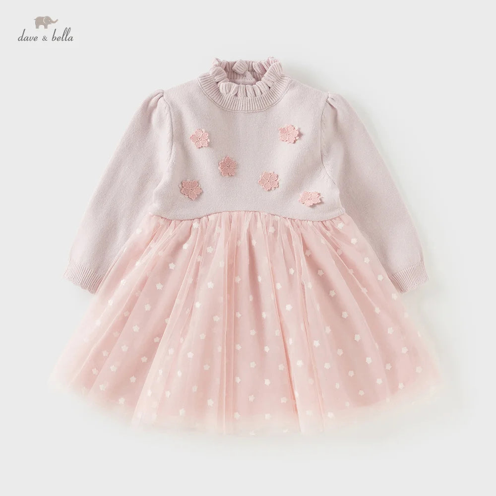 Girl Velvet Flower Sweater Dress – Winter Warm Style